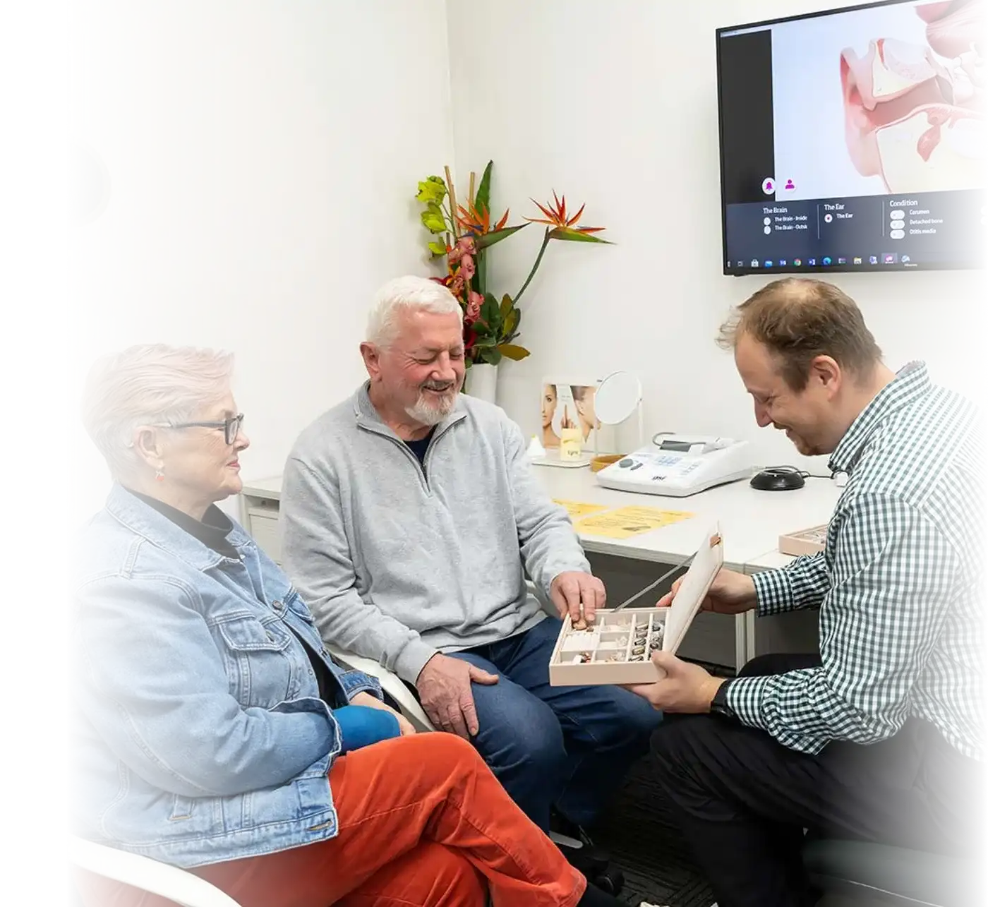 Once you’re feeling comfortable with the sound of the hearing aids, we will show you everything you need to know about them. We’ll demonstrate how to put them in and take them out comfortably, share simple cleaning tips to keep them working beautifully, and make sure you feel completely confident caring for your new hearing companions. We’ll go over everything as many times as you’d like until you feel completely at ease.